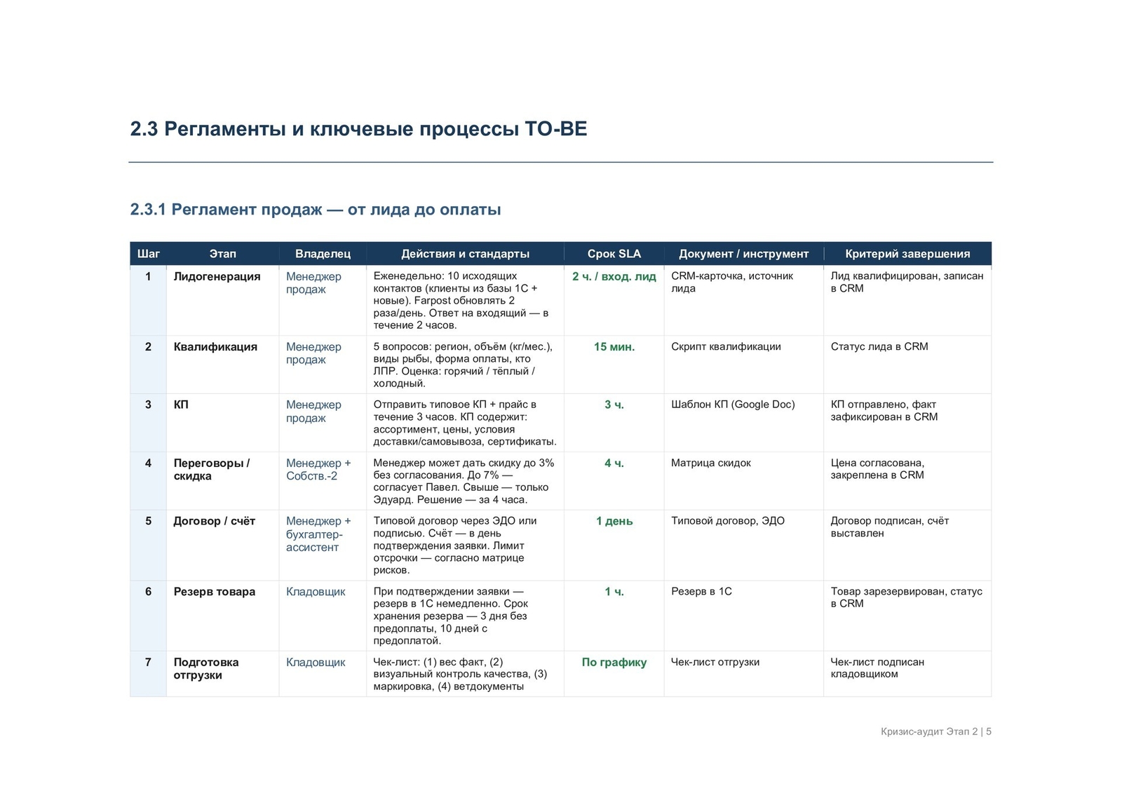 | Роли и ответственность руководителей | Порядок принятия решений и контроль исполнения |